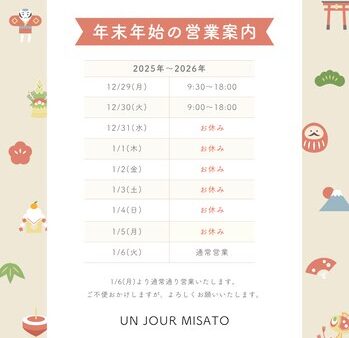 今年は12/31(水)~1/5(月)まで休業とさせていただきます。