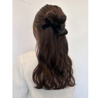 ハーフアップでも華やかな雰囲気が出るのでおすすめです^ – ^