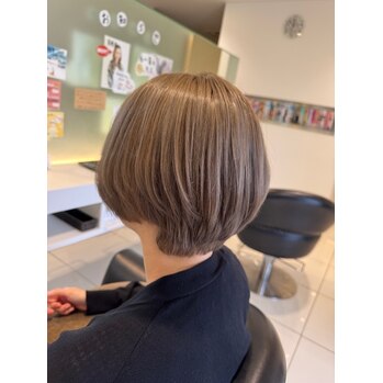 ブリーチ1回以上必須ですが、透明感あるグレージュカラーにさせていただきました。